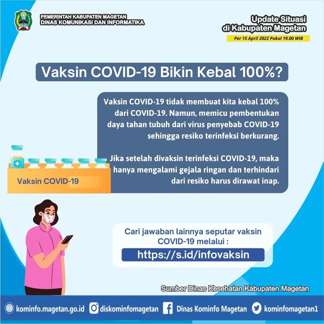 Pemerintah Kabupaten Magetan tidak henti mengingatkan masyarakat Magetan untuk tetap disiplin protokol kesehatan 5M, selalu menjaga imunitas dengan istirahat cukup, olahraga teratur, dan konsumsi makanan bergizi seimbang.