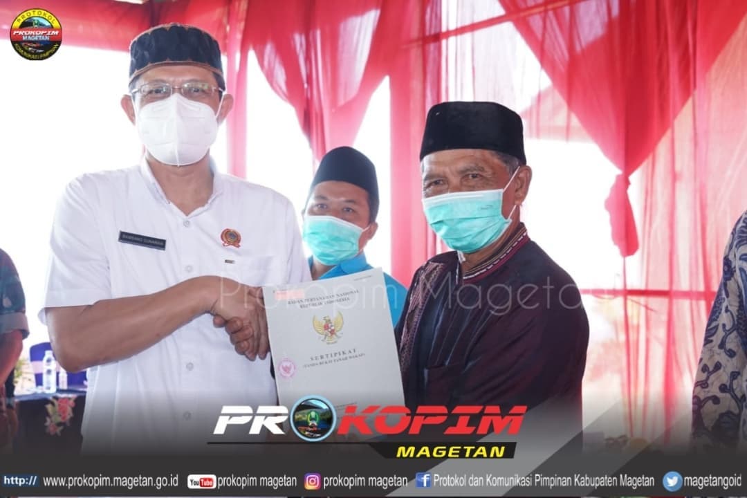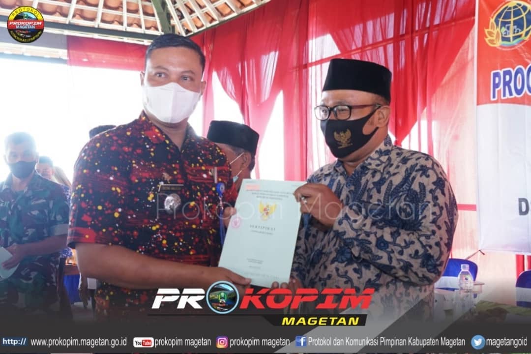 Bupati Suprawoto menyampaikan bahwa sertipikat merupakan bukti sah kepemilikan tanah. Dengan adanya sertipikat maka akan menghindari sengketa atas kepemilikan tanah. Selain itu untuk pemberdayaan masyarakat, karena dengan kepemilikan sertipikat bisa menjadi akses untuk mendapatkan permodalan.